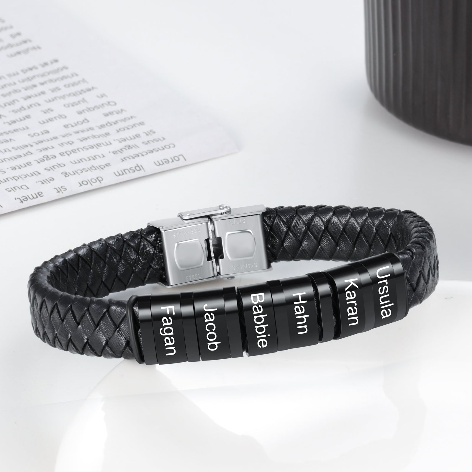 Men's engraved Bead bracelets are available in black and can engrave 1 to 6 Beads. This brand bracelet with a personal name presents a unique masculine charm. Make the perfect Christmas gift for your spouse, child, father, brother, son, grandson, grandfather, boyfriend, best friend, or special person in your life! It is also a birthday gift for men.