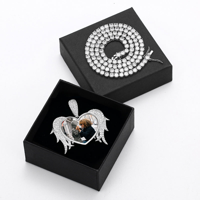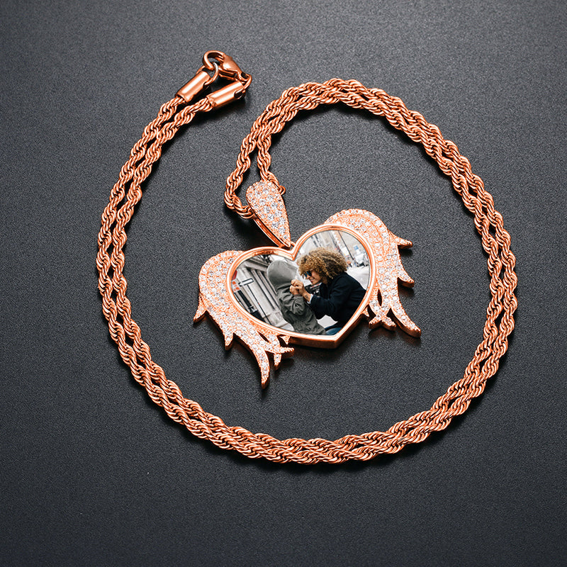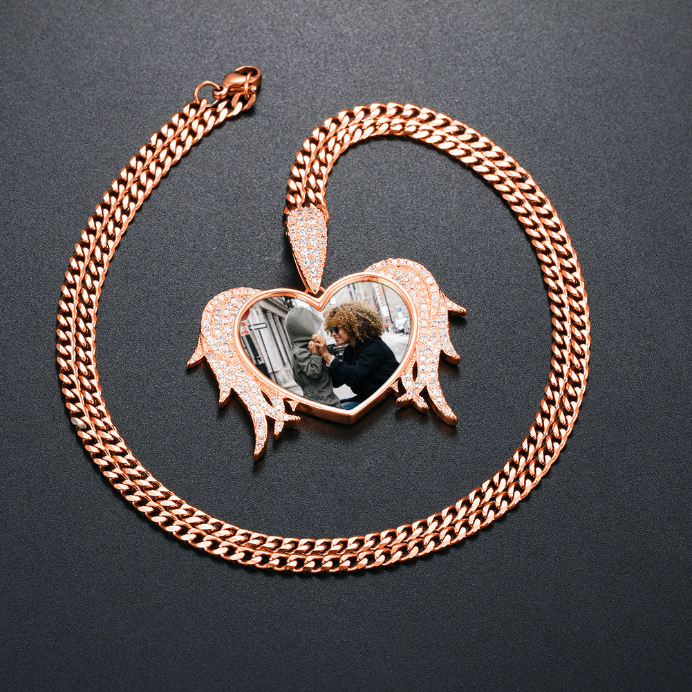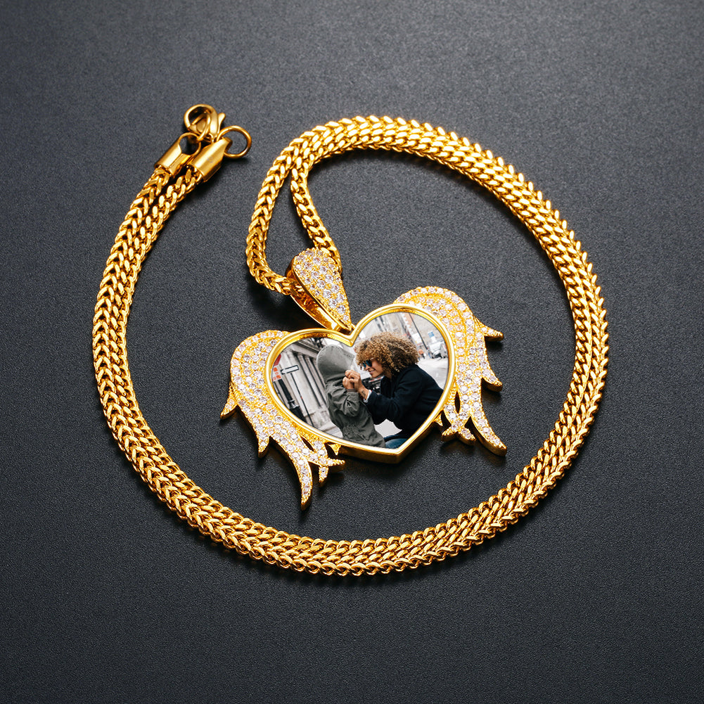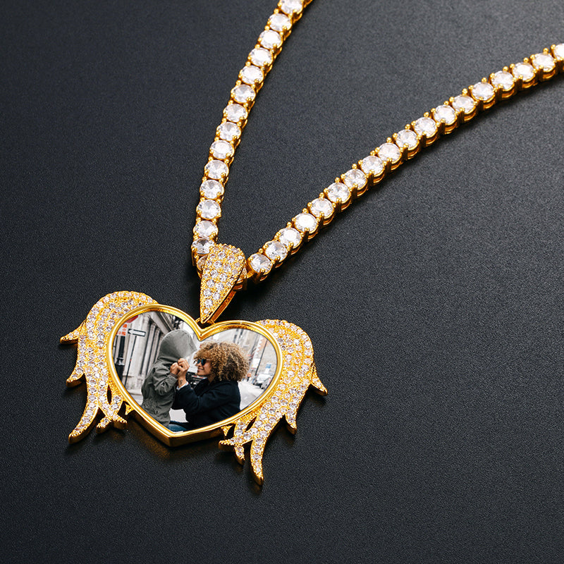 Surprise your loving person with the best gift from our brand new necklace! Let's add the gorgeous hip-hop vibe by wearing our exclusive guardian angel wings necklace. This pendant is made of high-quality material and you can add your favorite picture inside the pendant.