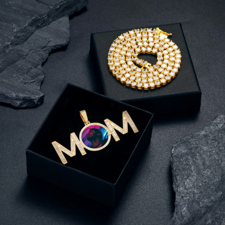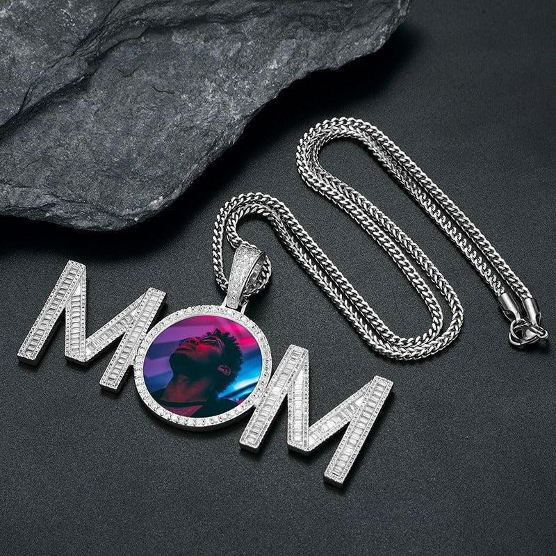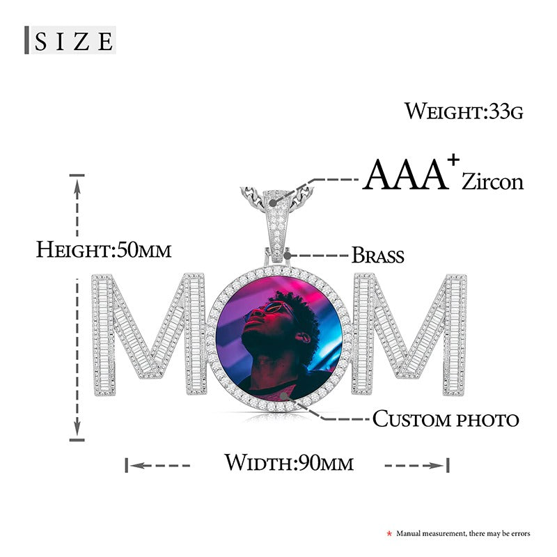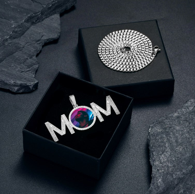 Step away from typical mom jewelry with a simple necklace, make it stand out with our unique personalized "MOM" photo Medallion with solid cubic zirconia pendant. This personalized photo necklace was born for family gifts. It is the most fashionable accessory that will allow you to commemorate your favorite photo in a piece of jewelry that you can wear every day.