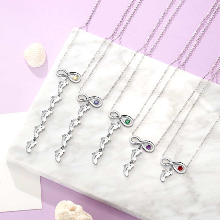 Personalized Birthstone Infinity Baby Feet Necklace- Gift Ideas For Mom On Mothers Day