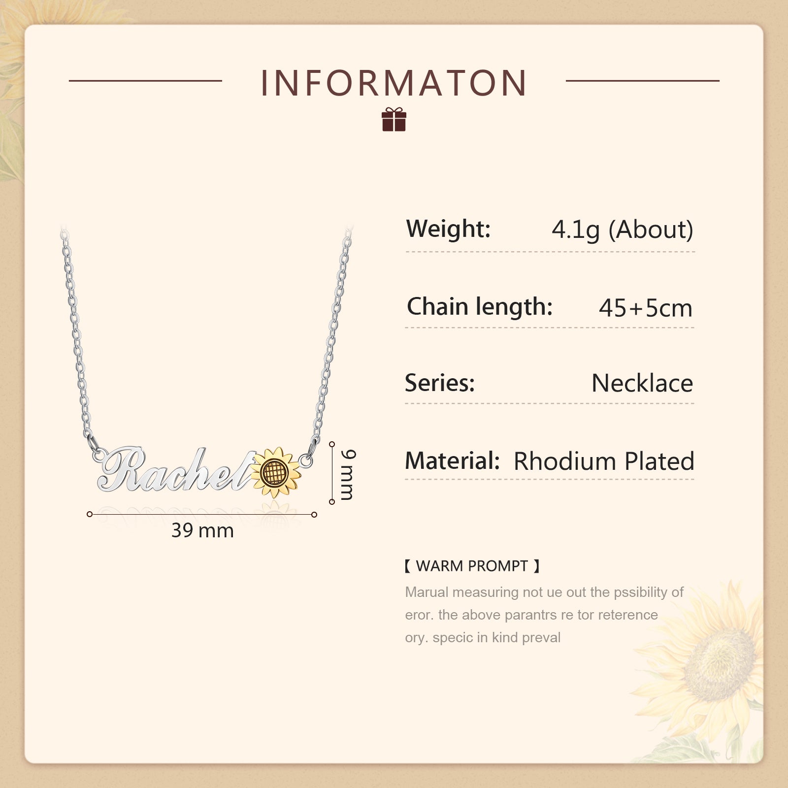 This silver necklace with a sunflower is a constant reminder of the beauty of nature. Sunflowers are known as "lucky" flowers, making them the perfect gift to make someone's day happy. Sunflowers symbolize adoration, loyalty and consistency. A reminder to smile, stay positive and let in the sunshine! These treasures are a stable addition to everyday wear. Highly polished silver has a coating that retains its color for a long time. Elevate your outfit with a pretty style Sunflower name necklace from EngravedGiftsly.