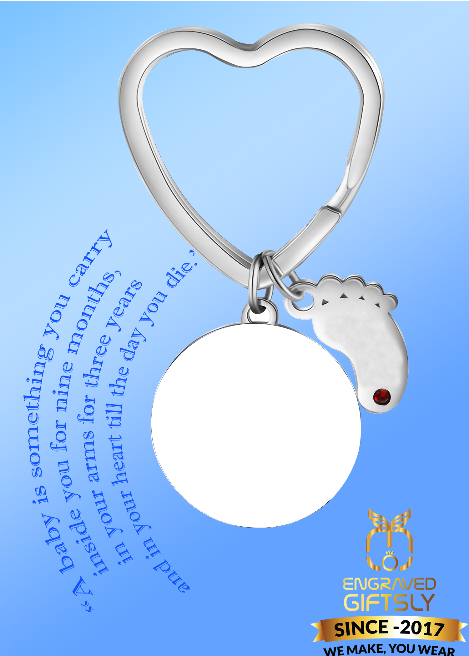 Your pendant will accompany Engraving in baby Feet with your custom Name.