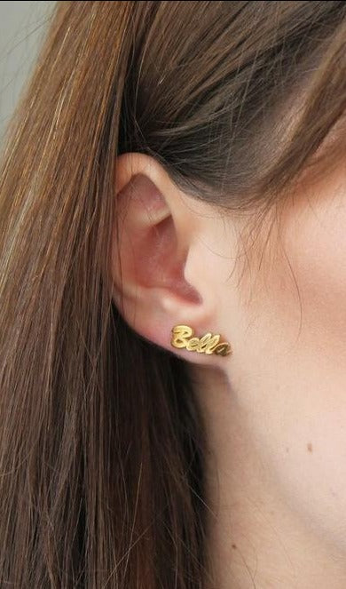 Cursive Nameplate Stud Custom Name Earrings- Best Christmas Gifts For Girlfriend