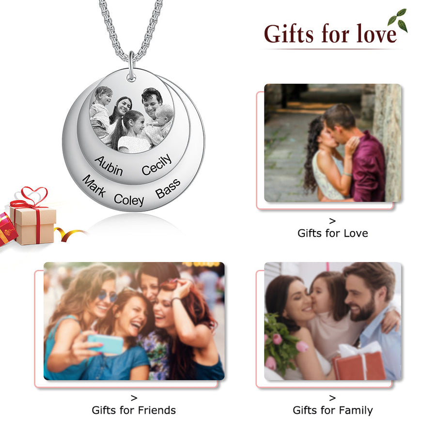 Custom Family Photo Memory Medallion Necklace with Name Engraving - Special custom Gift for Christmas