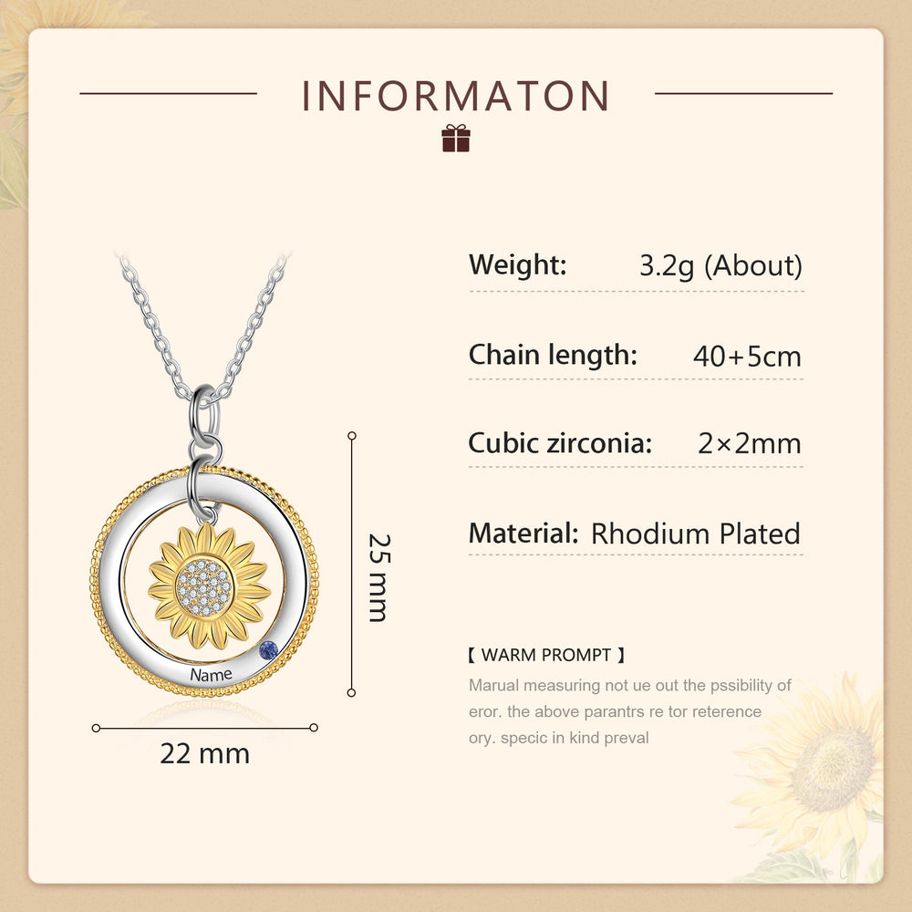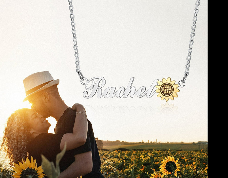 Custom Name Necklace With 18K Yellow Gold Plated Sunflower