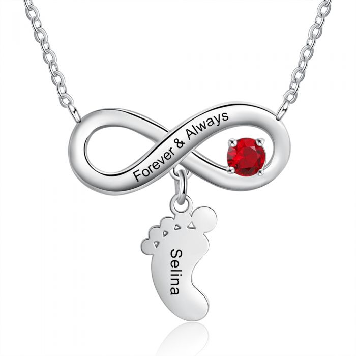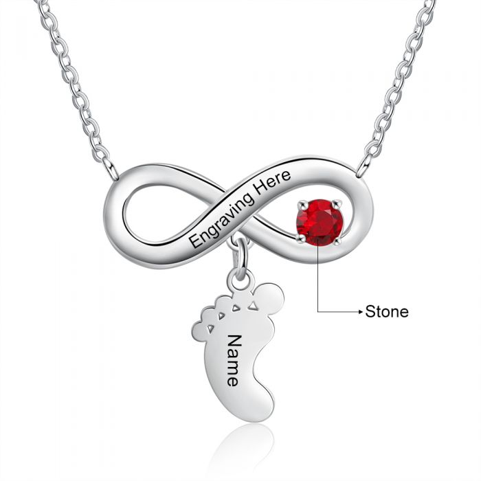 Personalized Birthstone Infinity Baby Feet Necklace- Gift Ideas For Mom On Mothers Day