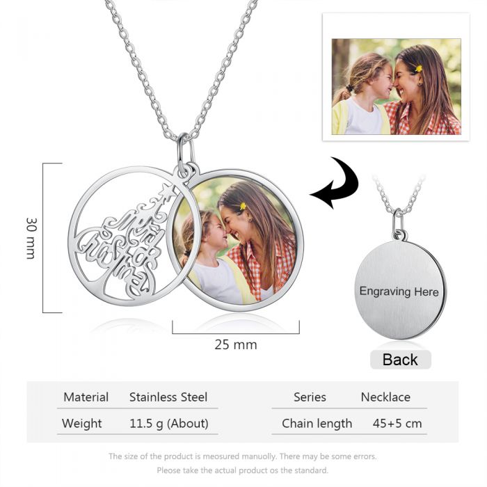 I love this lovely photo necklace. An amazing product the engraving is of great quality and was delivered earlier than expected.