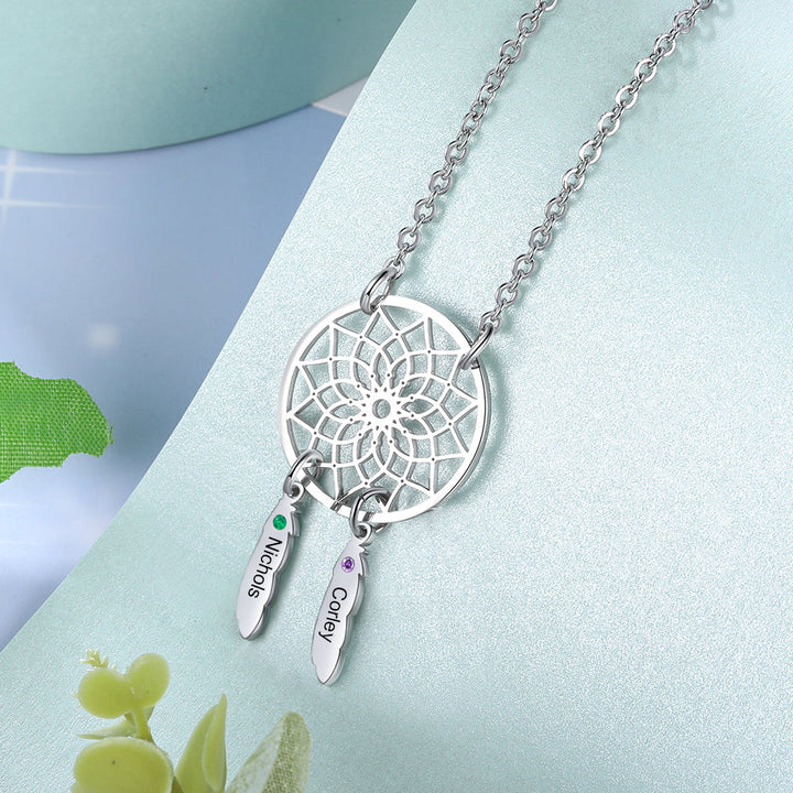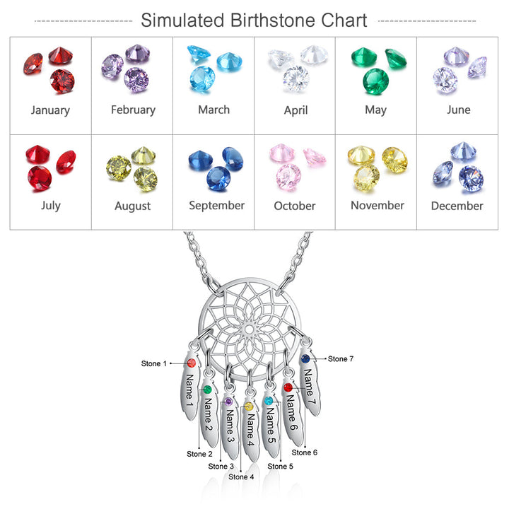 Turn this adorable and fine "Dream Catcher Necklace" with up to 7 names and birthstone grand articulation of adoration, the perpetual love you and your children share. You can tweak this Round accessory for mama precisely as you need. This delightful piece exhibits a Cubic Zirconia Birthstone and custom up to 7 Stunning Custom Names leaf.