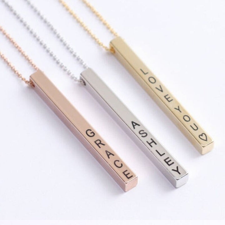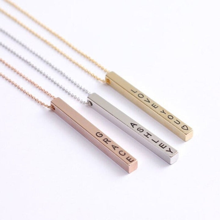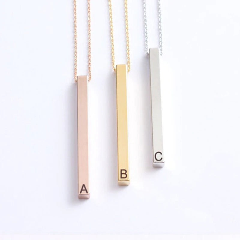 You can enhance your style with this personalized name bar necklace. This is a personalized vertical bar necklace. This customized name necklace is perfect for weddings, birthdays, and other specials occasions. This personalized name necklace can be a gift for your loved one or a special treat just for yourself. Customize this very popular bar necklace with any name, date, initials, Coordinates, Roman Numeral, symbols that are special to you.