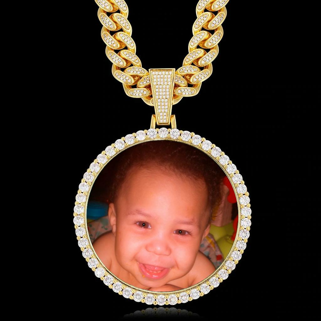 Custom Photo Medallion Necklace with 12MM Cuban Chain is the most loved new trend as it allows you to memorialize your favorite photo into a piece of jewelry you can wear every day. Custom Photo Medallion Necklace is the perfect backdrop for your favorite photo. A personalized necklace with your special moment is always the best gift for your loved ones. This is a very memorable medallion necklace. You can put any of your favorite images into the pendant.