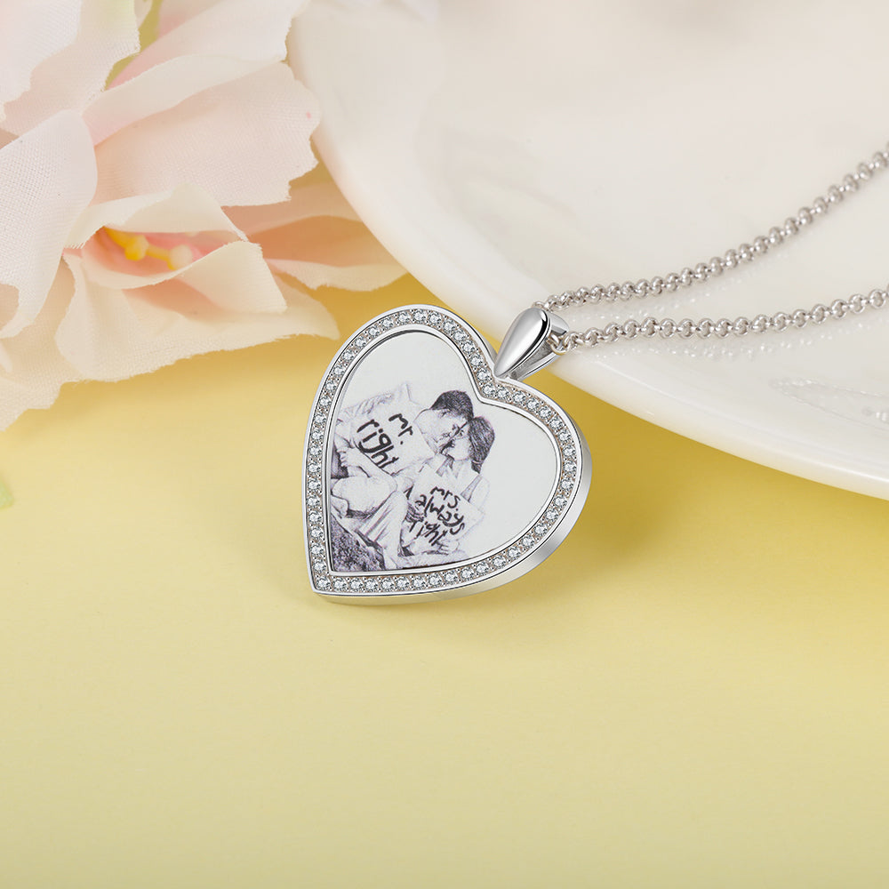 Capture the special moment and customize it into an everlasting custom Heart Rhinestone photo necklace. Your pendant will accompany back engraving with your custom words, date, or symbol. Which is a perfect piece of personalized photo jewelry that makes you special and shows your personality.