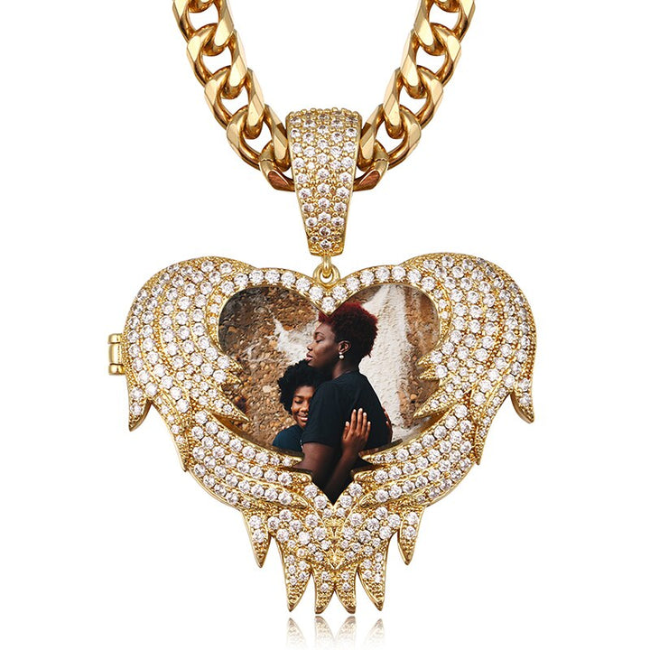 Beautiful Heart Pendant Necklace, It looks like a flower and can be customized with any photo you want to. Personalized 18k Gold Heart Photo Pendant Necklace is uncommonly designed as a locket, with you can change any photo, you can put any photo when you want, also its a Hip Hop Pendant glorious Pattern 2 in 1 Necklace.