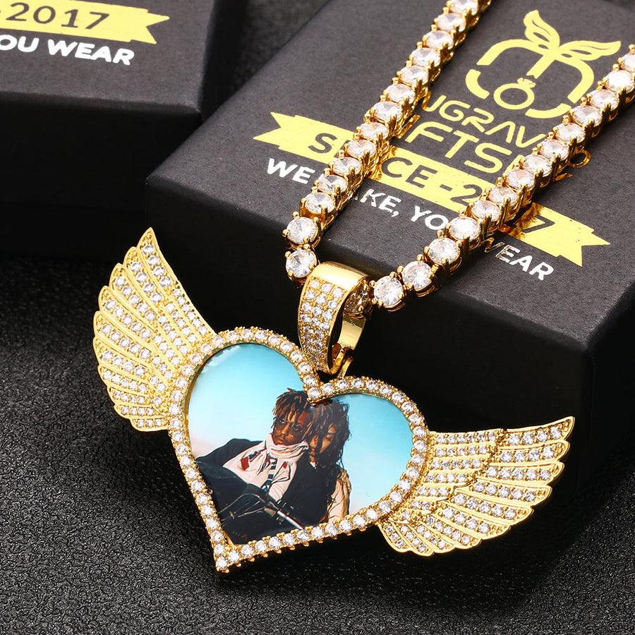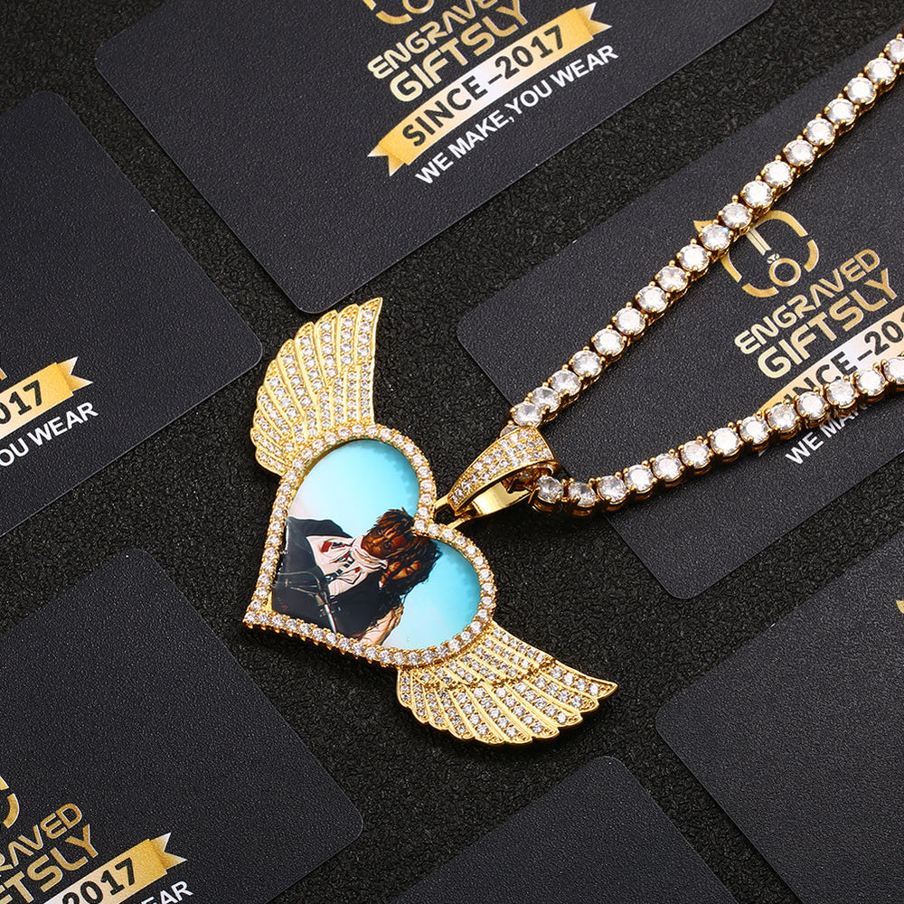 Custom Angel Wing Heart Shape Photo Medallion Necklace is the most loved new trend as it allows you to memorialize your favorite photo into a piece of jewelry you can wear every day. This custom Hip Hop photo medallion necklace specially designed for hip hop lovers. The photo necklace is the perfect backdrop for your favorite photo. A personalized necklace with your special moment is always the best gift for your loved ones.